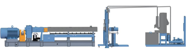 該系統(tǒng)通常包括模頭,切粒小車,旋風分離、振動輸送等。