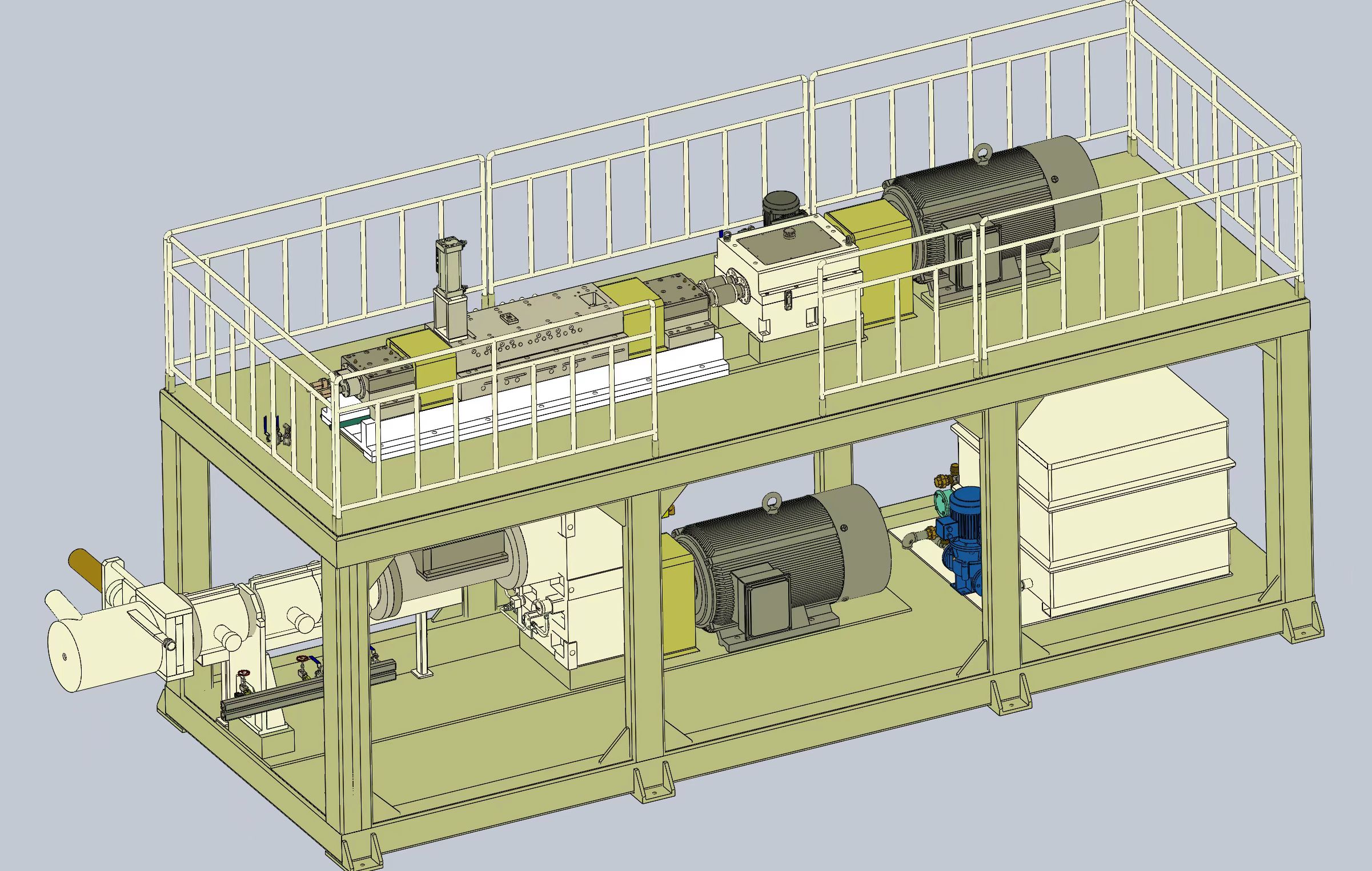 該系統(tǒng)由模頭,水下切粒機,循環(huán)水系統(tǒng),排水系統(tǒng)。